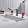 Gebürstete Gold Waschtischarmatur Vollmessing Schwarz Badezimmerarmatur Graue Spültischarmaturen 3-Loch Heiß und Kalt Wasserfallarmatur Wasserhahn