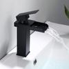 Schwarzer Waschbeckenhahn Wasserfallhahn Mischbatterie Messing Badezimmerhahn Badezimmer Waschbeckenhahn Mischbatterie Heiß- und Kaltwasserhahn
