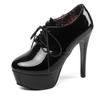 Modische Damenstiefel, neue Wintermode, runder Kopf, Schnürstiefeletten mit hohem Absatz, Damenschuhe, Übergröße 34-45, Absatzhöhe 10 cm, Schwarz