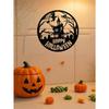 Wanddekoration aus Metall – Rahmenloser Anhänger mit Halloween-Hexe, Katze, Fledermaus und Schlossmuster | Kreative Wanddekoration aus Eisen
