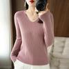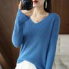Herbst/Winter V-Ausschnitt Pullover Damen Gestreift Einfarbig Basis Pullover Koreanischer Slim Hoodie Innen Set Damen Warm Lässig Strickpullover