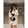 Katze Jacquard Imitation Nerzfell V-Ausschnitt Pullover Damen Herbst und Winter Lazy Style Lockere Strickware Weiches Klebriges Oberteil
