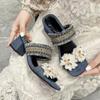 Modeschuhe für Damen 2024 Neue Blumen-Design Damen Sandalen Lässige Mode Slingback Sandalen Bequemer Dicker Absatz Outdoor Slides