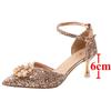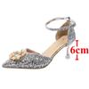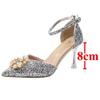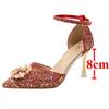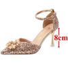 Fashion New Thin Heels Bling Glitter Pumps Women Fahsion Pearl Buckle High Heels Shoes Woman Pointed Toe Ankle Strap Wedding Party Shoes
