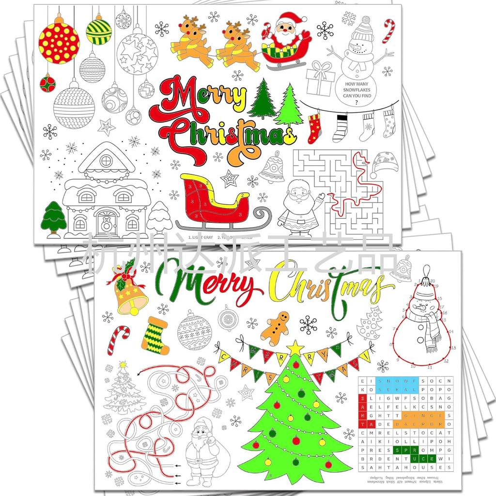 Weihnachts-Graffiti-Karten, Weihnachtsdekorationen, Ausmal-Papier-Platzsets für Kinder, Malbücher für Kinder