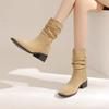 Herbst Damen Spitzschuh Klobiger Absatz Reitstiefel Retro Damen Mid-Calf Stiefel Outdoor Casual Schuhe mit Absatz Zapatos De Mujer