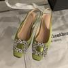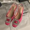 Damen High Heels Frühling und Herbst Luxuriöse Strassschnalle Eckige Zehenpartie Elegant Bankett Slingback Sandalen Sandalias De Mujer