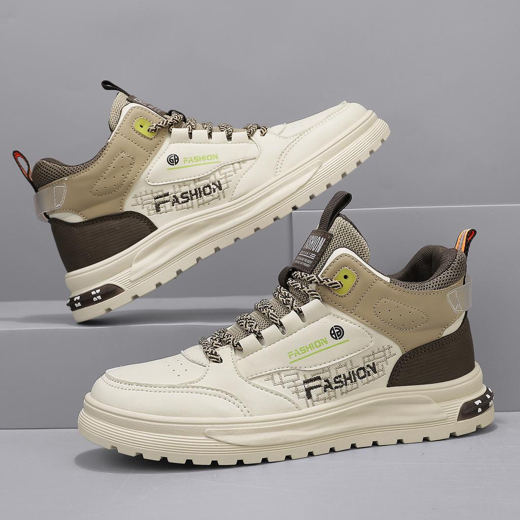 Mode Mode Herren PU Leder Freizeitschuhe Frühling Atmungsaktiver Komfort Plateau Walking Schuhe Herren High Top Stiefel Trend Skateboard Schuhe