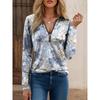 JPNTKY Damenmode Lässig Herbst Winter Floraler Druck Langarm Reißverschlusskragen Blusen & Hemden