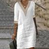New Solid Color V-Neck Mid-Sleeve Cotton Elegant Dress