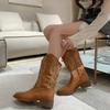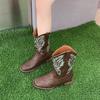 Mode Frauen Bestickte Westernstiefel Leder Mittlere Waden Cowboystiefel Winterstiefel mit Blockabsatz Weibliche Herbstschuhe Botas Chelsea