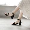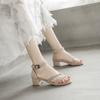 Mode Ein-Wort-Sandalen für Damen Dicke Absätze Quadratische Absätze Schuhe Damenschuhe Beige Orthopädisch Sommer 2024 Klobiger Block Rutschfest Heiß