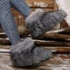 Modische Winterstiefel mit Kunstfuchs-Fell, für Damen, flauschiges Fell, Schneestiefel mit Plüschfutter, Slip-on, flache Gummistiefel für den Außenbereich, warme Damenschuhe