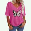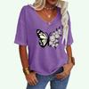 Damenmode V-Ausschnitt Lockeres T-Shirt Lässiges Oberteil mit Schmetterlingsdruck Damen Kurzarm-T-Shirt