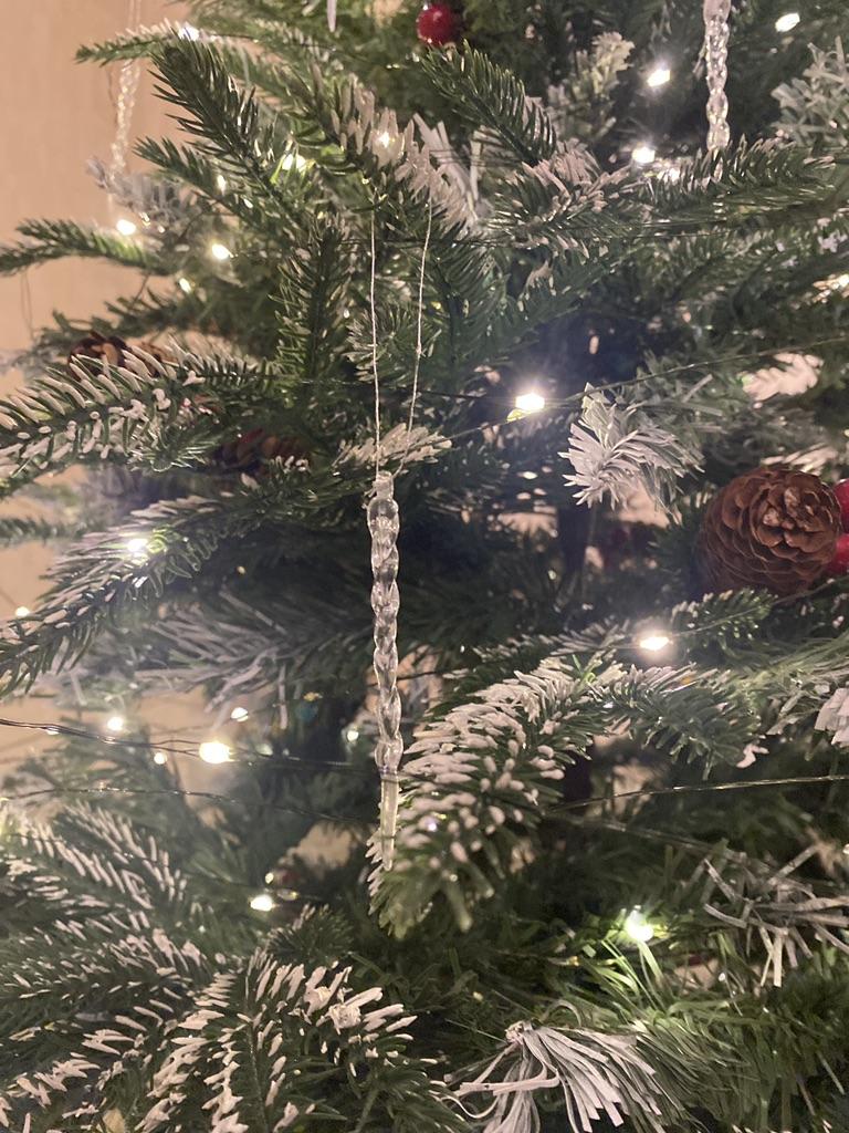 Die Eiszapfen sind gut, genau richtig für die Spitze des Baumes