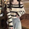 Herbstlicher neuer sexy gestreifter Pullover für Damen, kurzes Design, dezentes schulterfreies Pullover-Oberteil