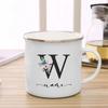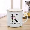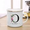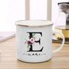 26 Initialen Schwarze Schrift Lila Blumendruck Emaillebecher Kreative Kaffeetassen Reisebecher Personalisierte Geschenke Cupshe Trinkgeschirr Becher