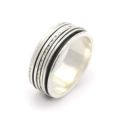 Silberner Angst-Brautjungfernring Handgemachter Meditationsring Ein Ton Ring 925 Sterling Silber Spinner Ring für Frauen - ca. 5,5 g