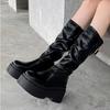 Damen High Heels Plateau Kniehohe Stiefel Designer Leder Goth Schuhe Frau 2025 Trend Gürtelschnalle Winter Marke Schnee Botas Mujer