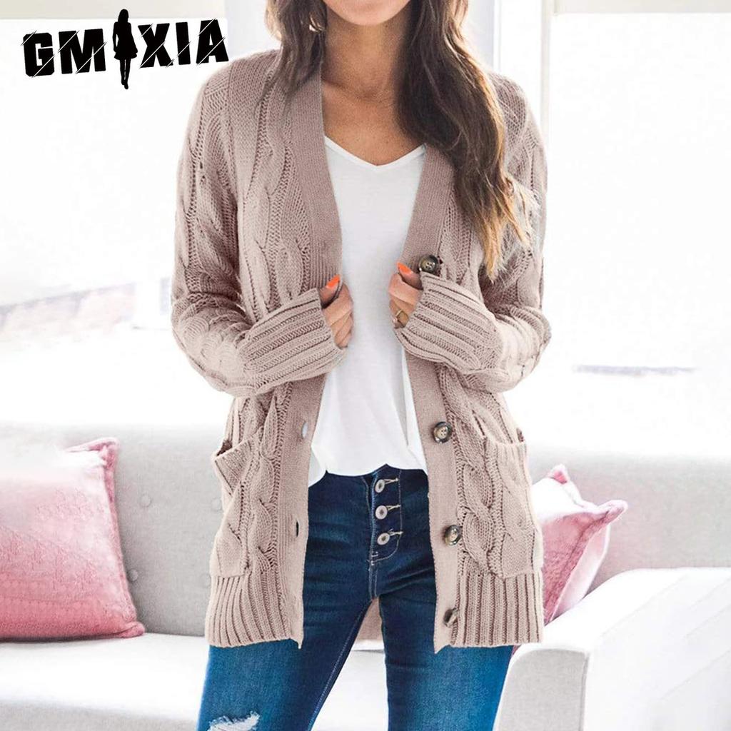 GMXIA Damen Vintage Casual Solid Color Print Herbst Winter Langarm V-Ausschnitt Jacken & Mäntel