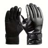 WTEMPO 1Pair Men's PU Cold-proof Windproof Full Finger Gloves Winter Outdoor Riding Cycling Fleece Thickened Black Touch Screen Gloves