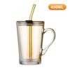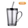 450 ml Strohhalm-Kaffeetasse aus Glas mit Deckel und Griff, Trinkbecher, transparenter Fruchtsaftbecher, Isolierglas für Büro und Zuhause