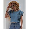Women's Casual Round Neck Summer Loose Shirt Lotus Leaf Bat Bat Shirt Short Sleeved Top for Women Blouses & Shirts
