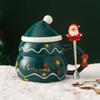 Weihnachtsbecher Neujahrsgeschenk-Dekorationsset Trinkgeschirr Partydekoration Kaffeetasse mit Deckel Löffel Cartoon Niedliche Keramiktasse Teetasse