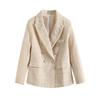 Women's Spring and Fall Double-breasted Plaid Suit Long-sleeved Retro Commuter Suit Jacket