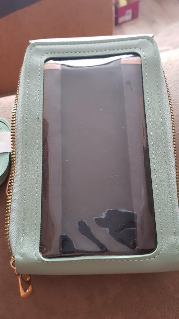 Die Handtasche ist super. Und das Telefon funktioniert hervorragend durch die Folie auf der Rückseite der Tasche.