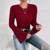Damen Rundhals Glockenärmel Burgunder T-Shirt Herbst und Winter Temperament Pendler Vielseitiges Oberteil