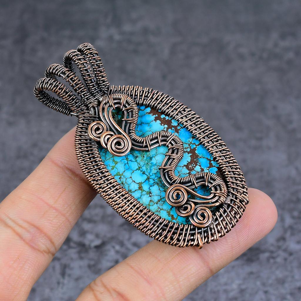 Natural Tibetan Turquoise Gemstone Copper Wire Wrap Jewelry Pendant 2.84" K8r66