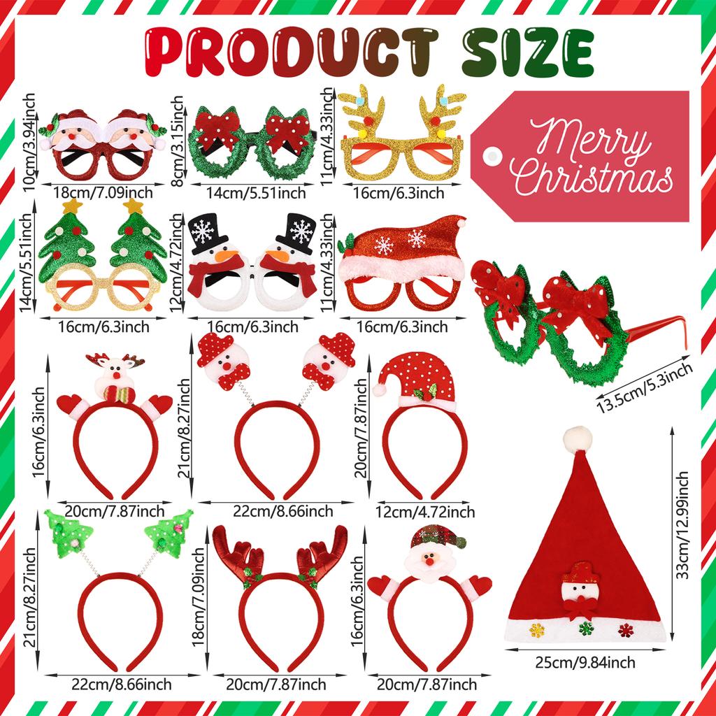 18 STÜCKE Weihnachts-Stirnbänder und Brillengestelle Weihnachts-Hut-Set Weihnachts-Stirnbänder Weihnachtshut Weihnachtsfeier Brillengestelle