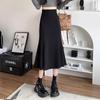 Schwarzer High-Waist-Fischschwanzrock für Damen – Slim Fit, mittellang, birnenförmig, Frühling & Herbst 2024.
