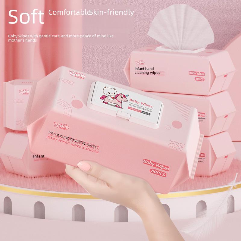 Baby Hand- und Mund-Feuchttücher, 80 Stück Großpackung mit Abdeckung, Hygienische Reinigungstücher