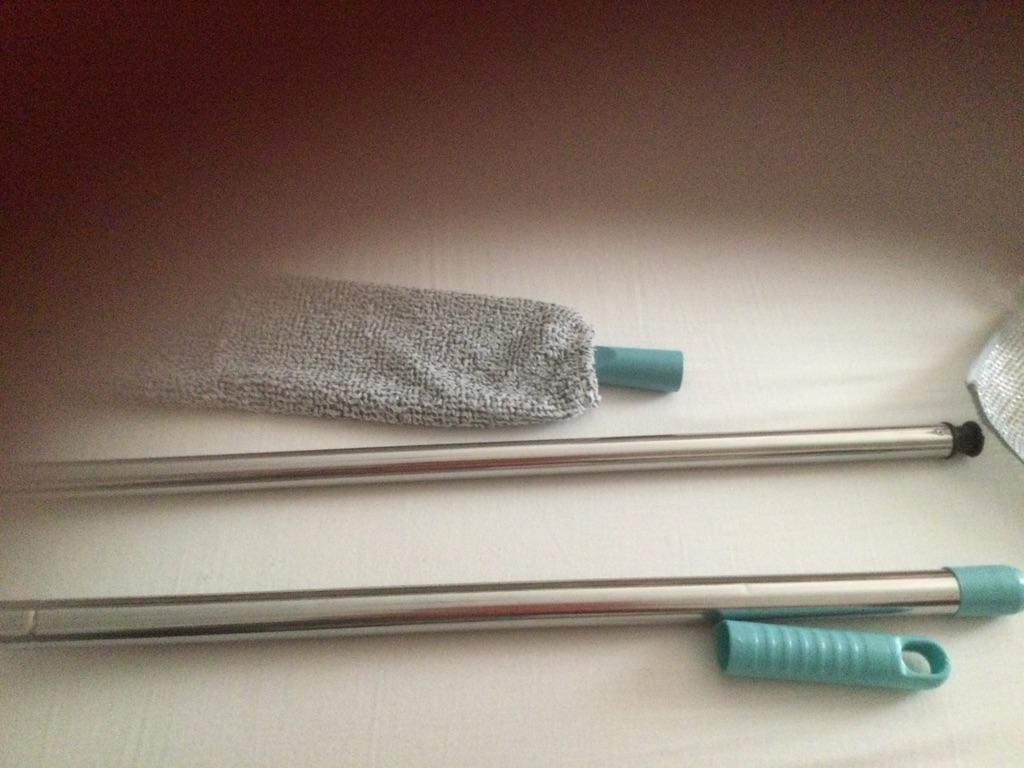 Tolle Hilfe für die Reinigung an schwer zugänglichen Stellen. Zusätzliche 3 Putzlappen. Die Größe des Stiels kann durch zusätzliche Rohre variiert werden.