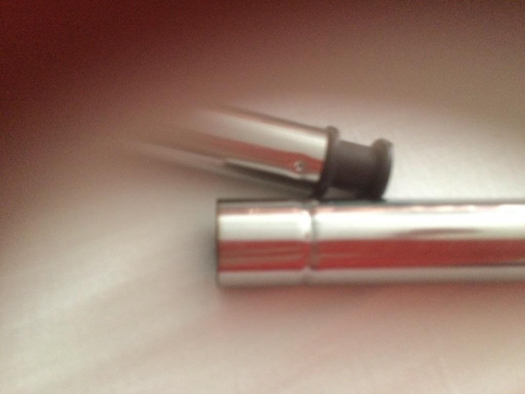 Der Stiel ist beschädigt und die Kappe am Stielende fehlt. Ich sehr scharfes Metall. Da muss ich noch eine Kappe drüber machen.