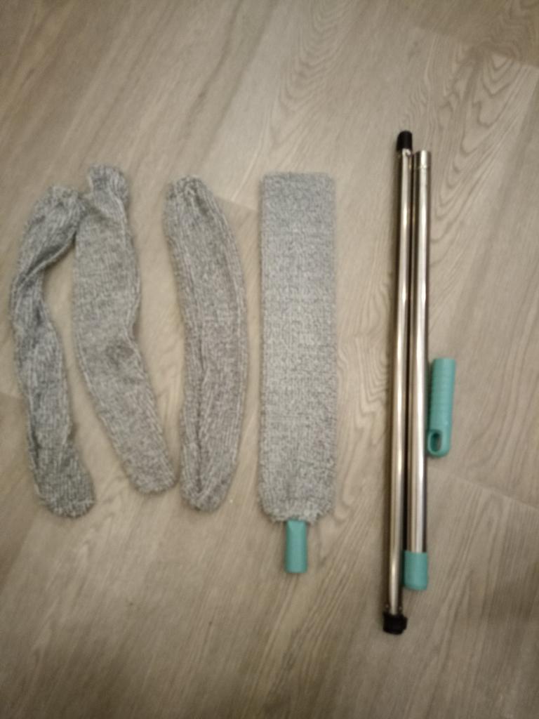 Teleskopstiel für Staubwedel . Die Bürste selbst besteht aus einem dünnen Stoff (Bezug), der waschbar ist und auf eine biegsame, flache Basis aufgesetzt wird. Gekauft habe ich sie zwar, aber ich setze die Reinigung wie bisher fort, wie ich es gewohnt bin.!
