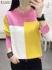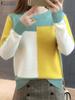 Damenmode Stricktops 2024 Herbst Freizeit T-Shirts Langarm Farbpatchwork T-Shirts O-Ausschnitt Elegante T-Shirts Femininas