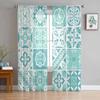 Geometric Square Texture Black White Sheer Curtains for Living Room Decoration Window Curtain Kitchen Tulle Voile Organza Drapes