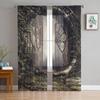 Simple Woods Green Trees Tulle Voile Curtains Bedroom Hotel Home Decor Sheer Curtains for Living Room Chiffon Printed Drapes