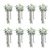 6 Stück elegante weiße künstliche Blumenstuhldekorationen, Bänke, Kirchenbänke, Blumen mit Bändern für Hochzeitsgang, Party-Versorgung