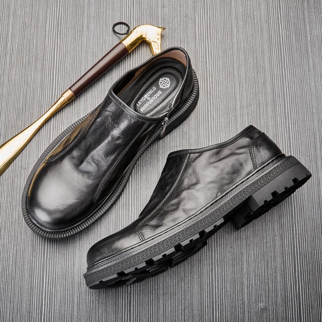 Lässige Lederschuhe mit großem Kopf Herren-Trend Vielseitige Leder-Rundkopf-Plateau-Reißverschluss Weiches Leder Business Blaue Einzelne Schuhe Herren