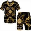 Sommer 3D-gedrucktes T-Shirt und Shorts 2-teiliges Set Lässiger Luxus Vintage Goldmuster Herren-Sportanzug 2024 Street Fashion Herren C