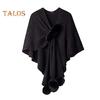 Damen-Umhang, Schal, V-Ausschnitt, einfarbig, Plüsch-Ball-Dekor, Kreuz-Design, warm, vielseitiger Strickschal, Alltagskleidung