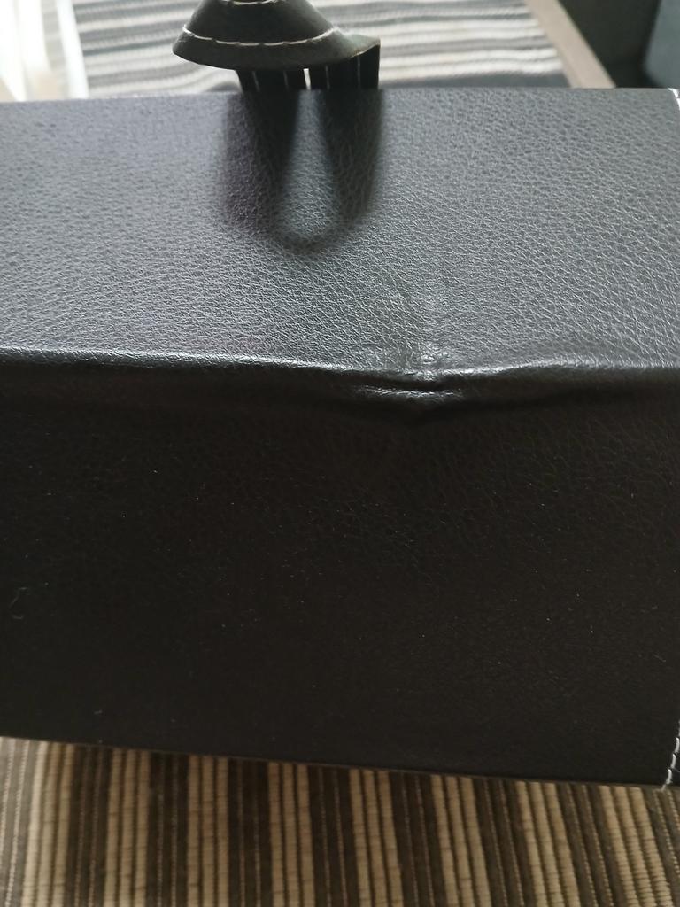 Die Schachtel kam stark zerdrückt an, einige Kanten sind gebrochen. Sie kann benutzt werden, aber das Aussehen hat gelitten.