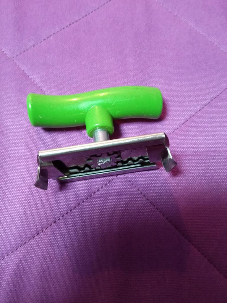 Flaschenöffner wie auf dem Foto. Noch nicht ausprobiert, wie er funktioniert.