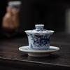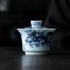 Gaiwan mit blauem und weißem Drachen und Metalleinlage, einzelnes Kungfu-Teeservice aus Keramik, Schüssel zur Teezubereitung, Teeterrine
