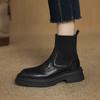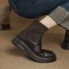Krazing Pot Sheepskin Winter Round Toe Chunky Heels Fashion Motorcycle Boots Women Slip on Kniting Platform Ankle Boots