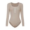 Herbst und Winter Neue Jumpsuits mit eckigem Ausschnitt und Slim Fit T-Shirt Damen Langarm Basic Sexy Romper T-Shirt Frau Uni Lässig Elegant Body Tee 25550